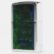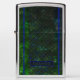 This Zippo Lighter has a cute diamond pattern on a hand-painted green gradient background with a swirl of lighter strokes of blue tones. The Diamond pattern that was personally crafted and used as an overlay over the background makes it more interesting,