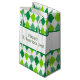 This green and white diamond pattern has a white wide band wrapped around the center. The text reads, "Happy St. Patrick's Day" and can be customized.