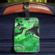 Green and black marble art digital pour painting colorful luggage bag tag.