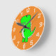 Green Dinosaur Drawing Round Clock