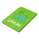 Help protect your device from dino accidents, with this kids case cover. Original graphic stegosaurus, trees and footprints design in shades of green. Customize with your own name, currently reads Lochlan. Perfect for budding dinosaur paleontologists and dinosaur fans. Exclusive dinosaur drawing and design by Sarah Trett for www.mylittleeden.com on Zazzle.