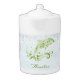 Enjoy your tea with a Green Dolphin Personalized Teapot. Teapot design features a vibrant metallic dolphin against a muted seascape adorned elegant scrolls with an area to personalize with your name. Additional gift items available with this design as well as a variety of colors.