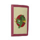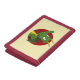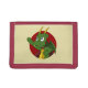 Wallet with illustration of head of a cute little green flying dragon, in red circle, cute fantasy / fairy-tale design for kids by Maxi Harmony