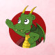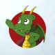 Wall Decal with illustration of head of a cute little green flying dragon, in red circle, cute fantasy / fairy-tale design for kids by Maxi Harmony