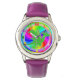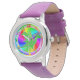 Cute Green Cartoon Dragon Rainbow Colors Wrist Watch for Kids with customizable name "Kimberly". A cute green cartoon dragon and rainbow colors border with colorful numbers 1 to 12 watch with purple strap. This super cute kid's dragon wistwatch for children is fully customizable and personalizable, add your name, texts and images! A great dragon gift for the big little dragon fan!