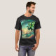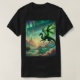 A majestic green dragon soars through a mystical, cloud-filled sky, leaving a trail of glowing light.