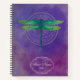 Hand painted, watercolor dragonfly in shades of green with intricate illustrated details against a purple background of varying hues with a ring frame and semi-translucent star map. Fully customizable text!