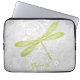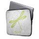 Protect your laptop while you're on the go with a Green Dragonfly Personalized Laptop Sleeve. Sleeve design features a colorful dragonfly, a soft white floral vine against a light gray grunge damask background with an area to personalize with your name. Additional gift items available with this design as well as a variety of colors. Personalize for yourself or makes a great gift.