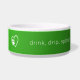 The design has a sleek 'drink, drip, splash' theme, symbolizing the joy of pet ownership. The background features a cool, modern gradient that ranges from medium to bright green. Whether they're eating their dog food or drinking water, this durable, high-quality dish makes a delightful pet accessory for any home. It's a thoughtful dog mom or dog dad gift for birthdays, holidays, or any special day.