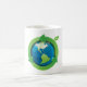 A green earth globe with green arrows around it. This design looks really effective on these Mug