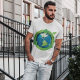 A green earth globe with green arrows around it. This design looks really effective on this Mens T-Shirt