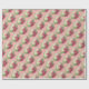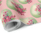 Wrapping paper with green colored Easter Eggs, pink flowers, on pink background.