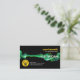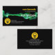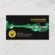 In a black cover, a green luminescent electrical current wave streaks across the card's face. Riding this electrical current wave is your job title "Electrician", which you can change. Over at the top lies your prestigious name and a slogan caption "your lightning repairs expert" ; Once again, you can change the caption to suit your needs. Towards the base is a yellow bulb logo you can use and your contact details.
