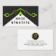 A grey cover features a creative green electrical wiring circuit shaped into a rooftop frame. In its circuit you have two electrical symbols with a lampshade casting a beam of light. Inside the beam lies your prestigious name with the business name "ELECTRIC" which you can change.