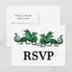 Perfect for a sophisticated fantasy tabletop game themed wedding is this nerdy and unique Elegant Dragons Wedding RSVP Postcard featuring a vibrantly colored pair of green dragons. Easy to customize, simply add your wedding details in the text fields provided. Click "Customize It" to find more personalization options.