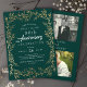 Green Elegant Gold Leaf Anniversary Photo Invitation