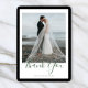 Wedding thank you flat card features an elegant emerald green script font with a modern and clean typographical design on a white background. This card is ready for you to customize with your own photo and message to thank your guests for being a part of your wedding day. Part of an ever-growing collection, please browse the Wedding Thank You Card Suite for similar items.