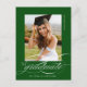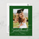 Green Elegant Script Graduation Party Invitation Postcard features a beautiful and elegant script overlaying your photo, along with your party details and photo on the back.