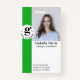 Sleek and professional green employee ID badge featuring a large customizable photo, name, job title, company logo, and unique QR code. Includes printed ID number and return information on the back. Ideal for consultants, teams, business staff, or corporate events.