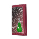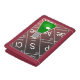 This chemistry-themed wallet features a cartoon drawing of an Erlenmeyer, or Conical, Flask containing a mysterious green chemical. The black and red background features a part of the Periodic Table of the Elements, including symbol, name, and atomic number!