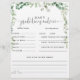 This green eucalyptus baby predictions and advice cards are perfect for a simple baby shower. The design features watercolor hand-drawn elegant botanical eucalyptus branches and leaves, adorning geometric frames.