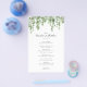 This pretty design features watercolor eucalyptus in shades of green and your custom text. Add your information using the template form. Use the advanced editing menus, accessed by selecting "customize further", to change the fonts, background colors and layout. See the entire collection for matching items.