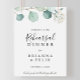This green eucalyptus rehearsal dinner welcome sign is perfect for a modern wedding rehearsal. The design features beautiful hand-painted watercolor green eucalyptus leaves, inspiring natural charm.