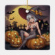 Green Eye Halloween Witch on Jack-O-Lantern's Ceramic Ornament