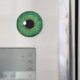Green Eye Iris © Sunny Mars Designs. Cool, fun custom printed green eyeball novelty round fridge or refrigerator magnet with a trendy, modern, beautiful, unique, freaky, creepy, weird and twisted graphic illustration of a striking big green realistic eyeball iris of an eye. Other color eyeball designs are also available in store.