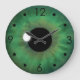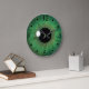 Green Eye Iris © Sunny Mars Designs. Cool, fun custom printed green eyeball large size round clock with a trendy, modern, beautiful, unique, freaky, creepy, weird and twisted graphic illustration of a striking big green realistic eyeball iris of an eye.