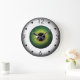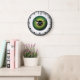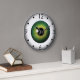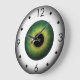 Green Eye Iris © Sunny Mars Designs. Cool, fun custom printed green eyeball large size round clock with a trendy, modern, beautiful, unique, freaky, creepy, weird and twisted graphic illustration of a striking big green realistic eyeball iris of an eye.