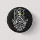 Protecting Hamza Hand with Green Eye - white on black. Shorter version. Nice, sharp Hamza Hand resembling tattoo. Lovely button with Hamza Hand.