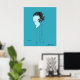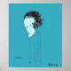 Background is soft medium blue, face is pale blue, hair black/white, eyes are green. This piece would add a pop of color to any room or office. Original and though provoking. Great gift idea!