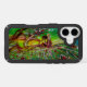 Whimsical,colorful vibrant watercolor painting with golden and silver foil in yellow,green,red colors,