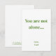 Share God's love and let someone know you are thinking about them. White flat note card with green print "You are not alone...Love, God". Notecards available in quantities of 10 or more.