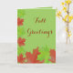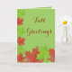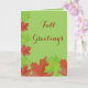 Reach out to those most important to you with this beautiful "Fall Greetings" greeting card. This card features a light green background decorated with red and green maple leaves. "Fall greetings" is written in a complementary brown color. A heart warming message is inside. Purchase yours today!