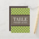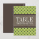 Trendy and chic Fancy Lattice Table Number Postcard featuring a stylish circle and diamond studded pattern over a vibrant tender shoots green background with a broad two-toned brown border. This elegant table card is perfect for a modern wedding. Easy to customize, simply add the appropriate table number(s) in the text field provided. Click "Customize It" to find more personalization options.