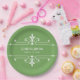 Simple and elegant Fancy Ornamental Wedding Paper Plates in green and white featuring a sophisticated art deco style ornamental flourish border. Easy to customize, simply add your wedding details in the text fields provided. Click "Customize It" to find more personalization options.