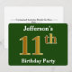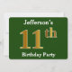 Green, Faux Gold 11th Birthday Party + Custom Name Invitation