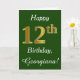 Green, Faux Gold 12th Birthday + Custom Name Card