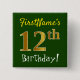 Green, Faux Gold 12th Birthday, With Custom Name Pinback Button