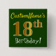 Green, Faux Gold 18th Birthday, With Custom Name Button