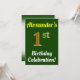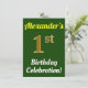 Green, Faux Gold 1st Birthday Celebration + Name Invitation