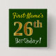 Green, Faux Gold 26th Birthday, With Custom Name Button