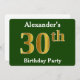Green, Faux Gold 30th Birthday Party + Custom Name Invitation