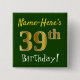 Green, Faux Gold 39th Birthday, With Custom Name Button
