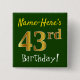 Green, Faux Gold 43rd Birthday, With Custom Name Button