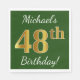 Green, Faux Gold 48th Birthday + Custom Name Napkins
