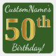 Green, Faux Gold 50th Birthday + Custom Name Square Sticker