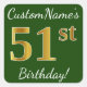 Green, Faux Gold 51st Birthday + Custom Name Square Sticker